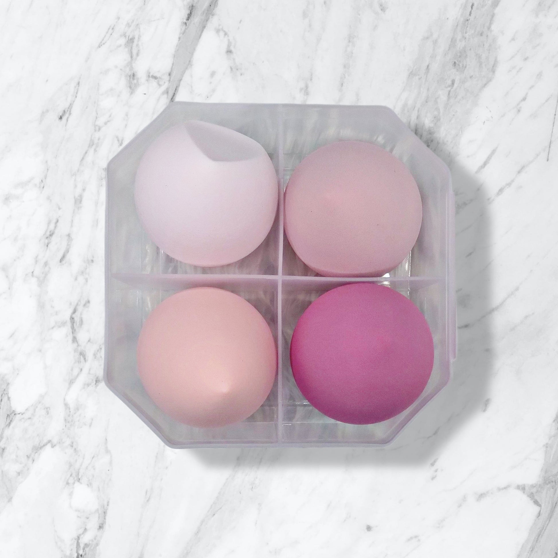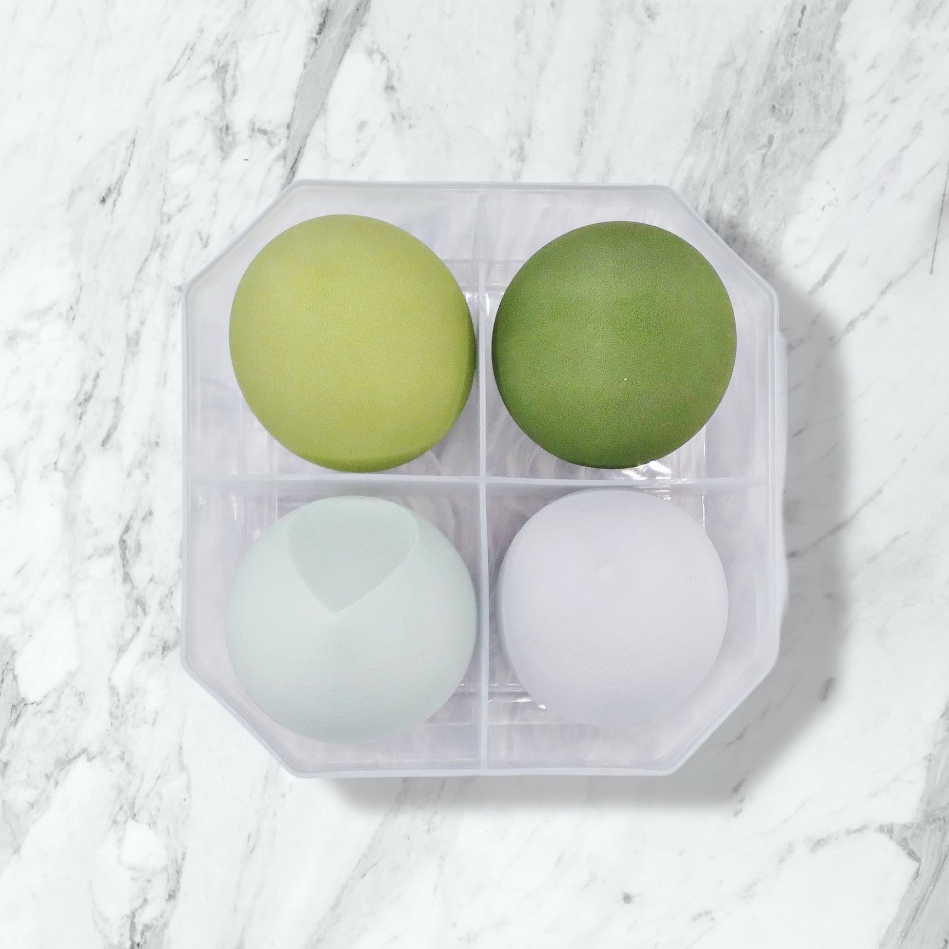 Enhance your makeup game with our 4-piece customizable makeup blenders, available in 4 different colors.