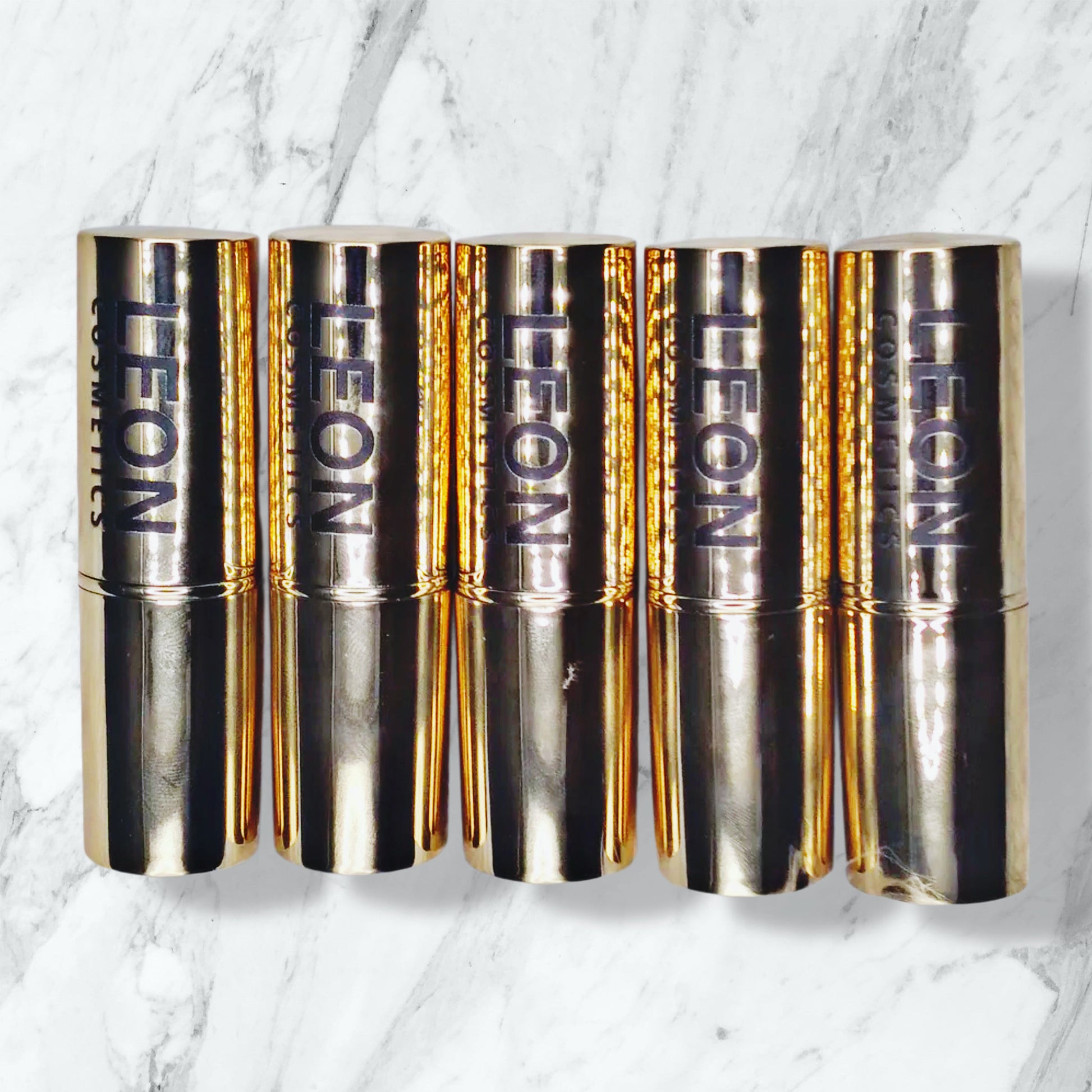 Introducing our stunning Golden Lipstick line in a variety of shades! Try it in different colors. 100% vegan. Cruelty-free.