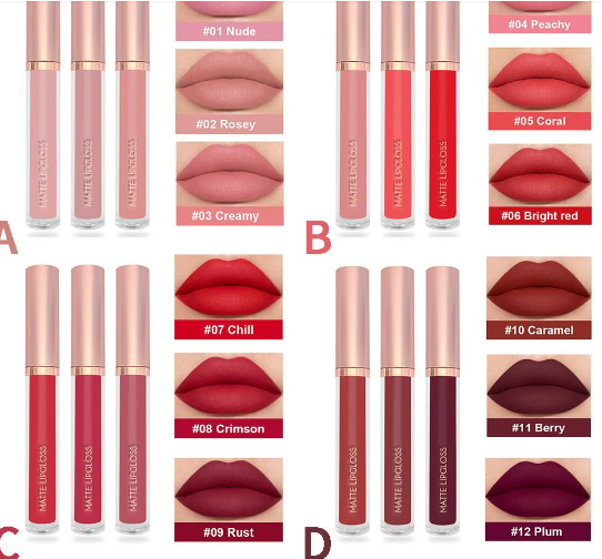 Discover our beautiful set x3 liquid lipsticks in a variety of colors. With 4 options to choose from. 100% vegan. Cruelty-free.