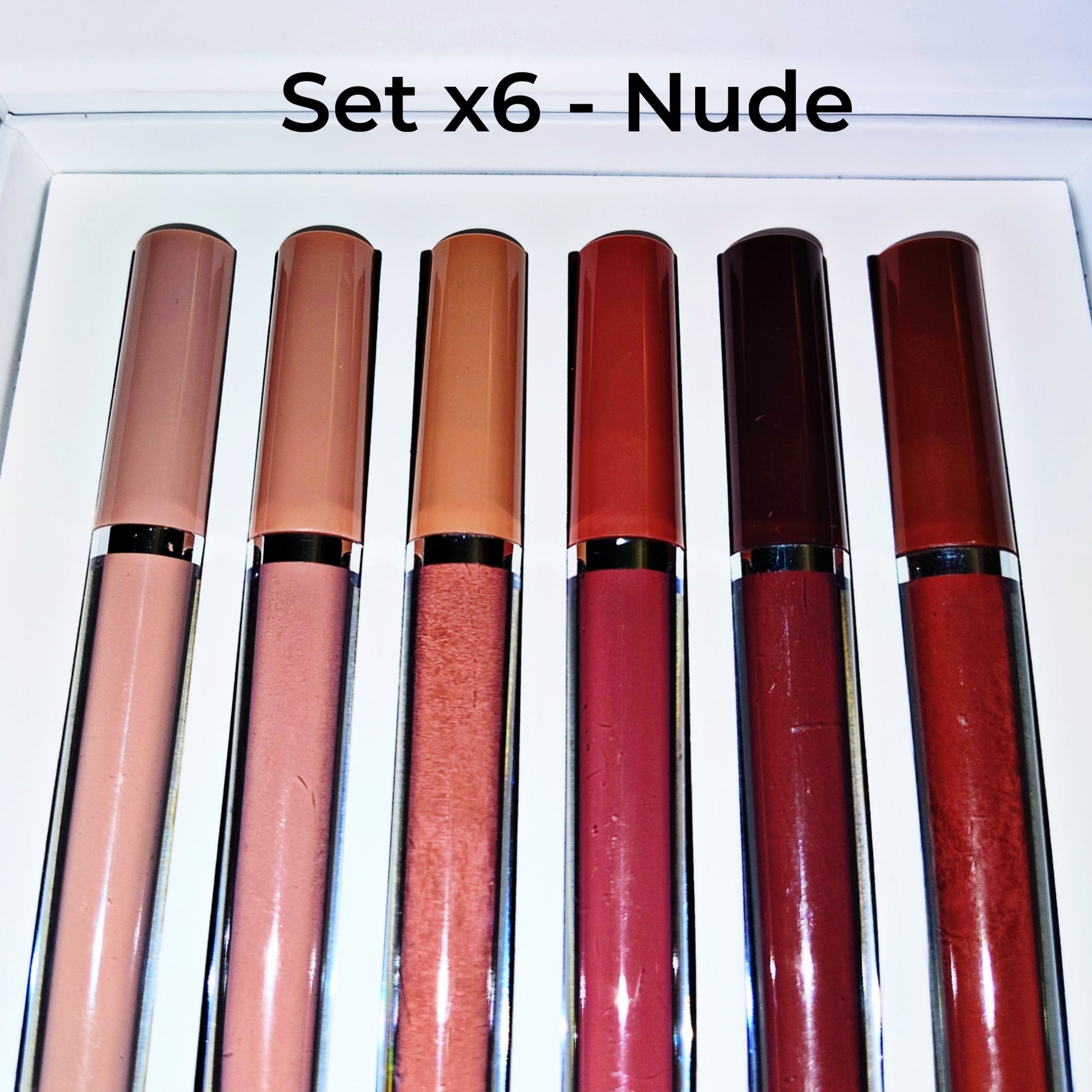 Enhance your look with our set x6 liquid lipsticks. 100% vegan. Cruelty-free. Choose from nude or red shades.